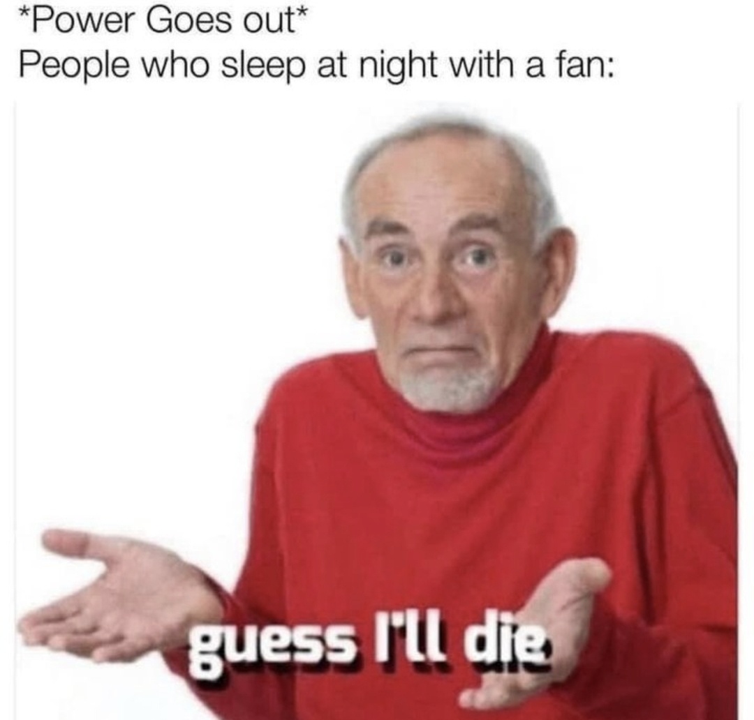 My fan broke. Unfortunately I couldn’t find a “my fan broke” meme that I liked.