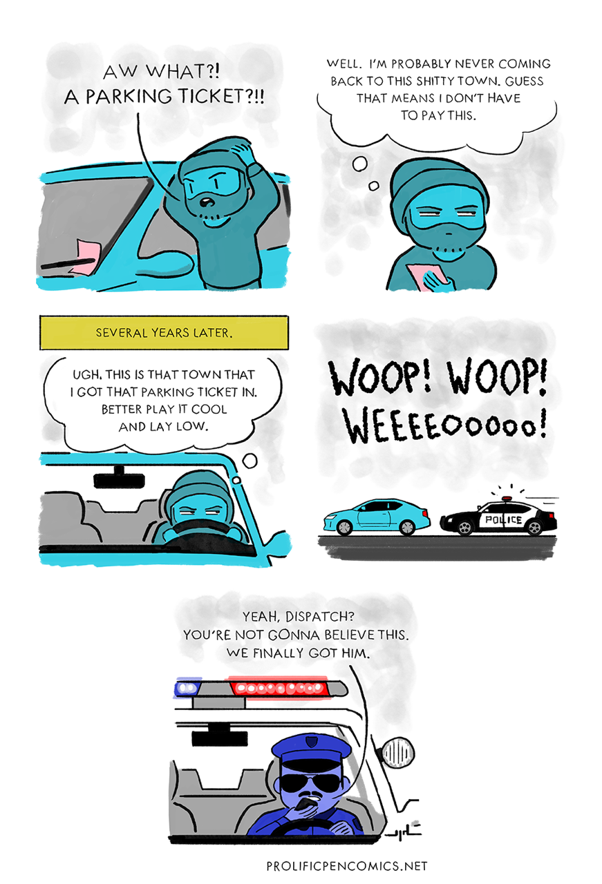 Then the violence enthusiasts, I mean police, take forever to remove your plates and take your license, all while making the situation as unnecessarily intense as possible, and then just fucking leaving you in the side of the road, but not before noting to you that if you don’t move your car somehow soon, they’ll be back.