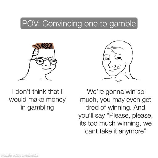 arrow-up148image[OC] Dont fumble to gamblelemmy.worldSUPER SAIYAN@lemmy.world to Memes@lemmy.ml · edit-26 months agomessage-square0linkfedilink cross-posted to: memes@lemmy.world