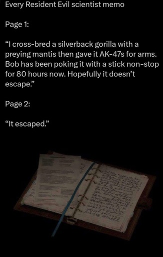 it’s always funny playing RE games and reading notes and you’re like “why would anyone write this down and confess to this?”