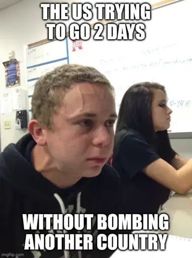Not_mikey@lemmy.dbzer0.com to Memes@lemmy.ml · 23 days agoBomb sales to Israel are down, gotta send them somewhere...lemmy.mlimagemessage-square6linkfedilinkarrow-up1274