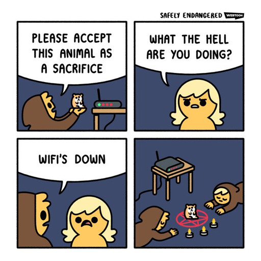 I dunno when it became the norm to say the WiFi’s down when it’s actually totally fine and unrelated to the internet connection being down.