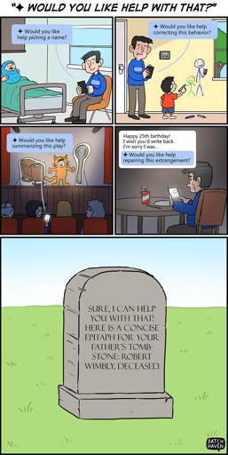 this ecommerce life@lemmy.world to Comic Strips@lemmy.worldEnglish · 24 days ago"✦ Would you like help with that?"lemmy.worldimagemessage-square30linkfedilinkarrow-up1532